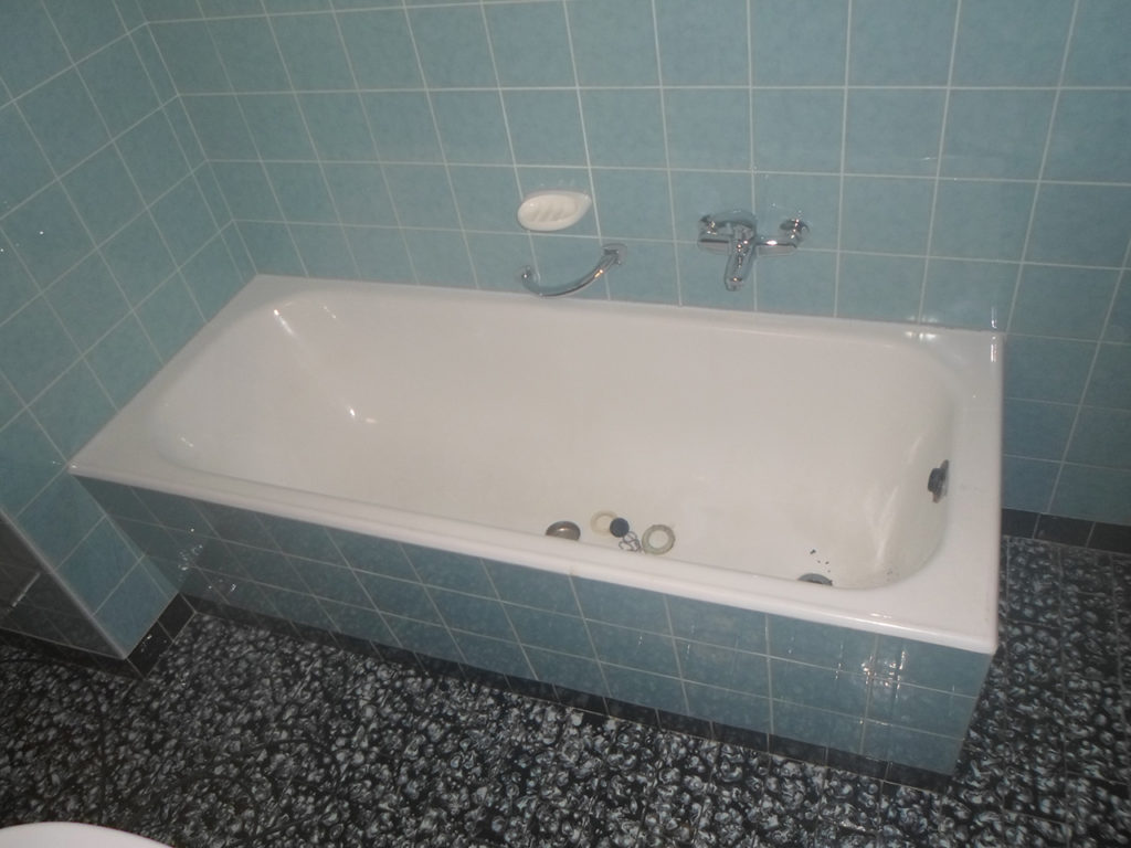 Il lavoro eseguito consiste nella rimozione della vecchia vasca da bagno e muri di sostegno, senza danni ai rivestimenti perimetrali.