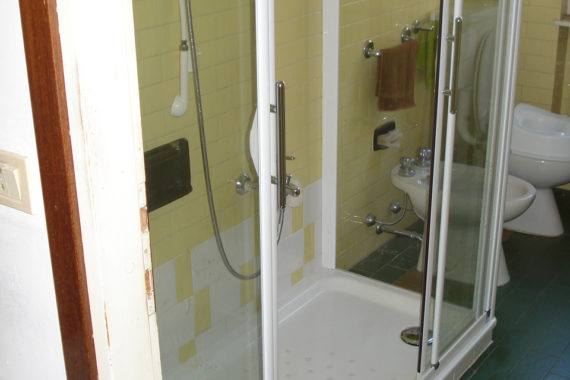 In seguito è stato posato un piatto doccia in acciaio con bordo di 3 cm..