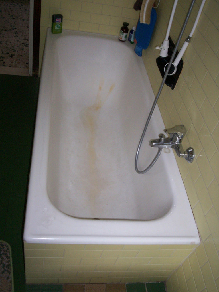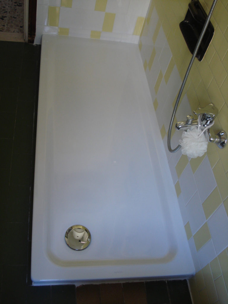 Rimozione completa della vecchia vasca da bagno e muri di sostegno, senza danni ai rivestimenti perimetrali.