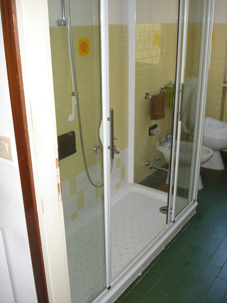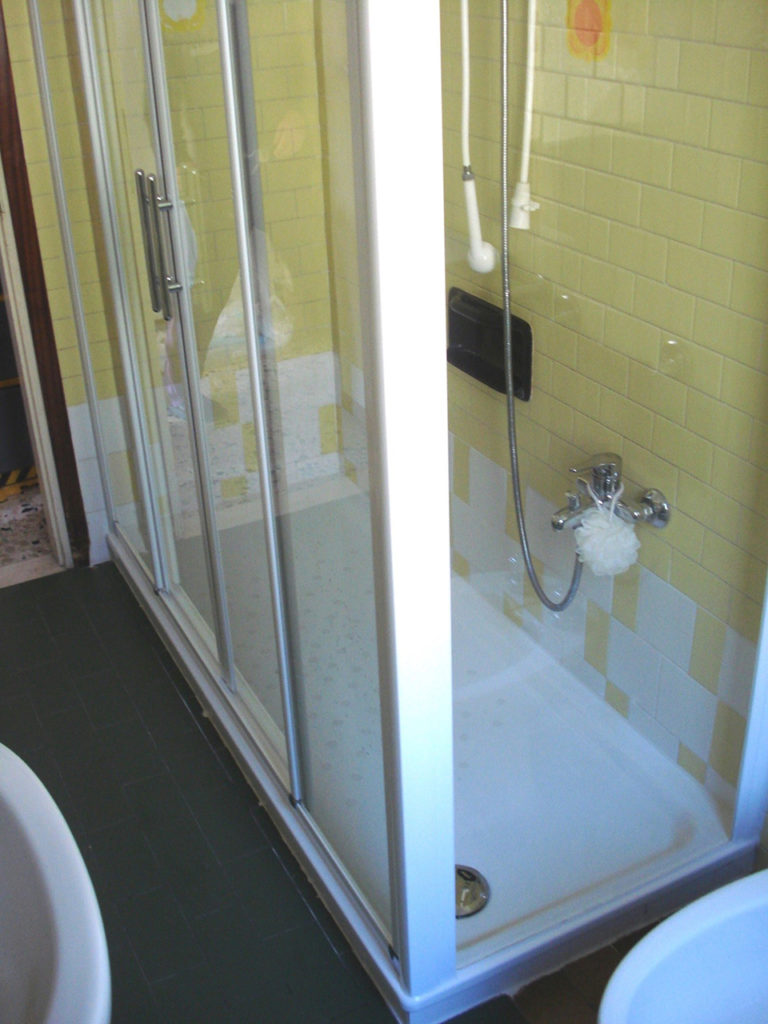 In seguito è stato posato un piatto doccia in acciaio con bordo di 3 cm..
