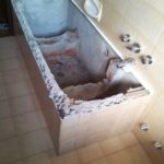 Rimozione completa della vecchia vasca da bagno e muri di sostegno, senza danni ai rivestimenti perimetrali.