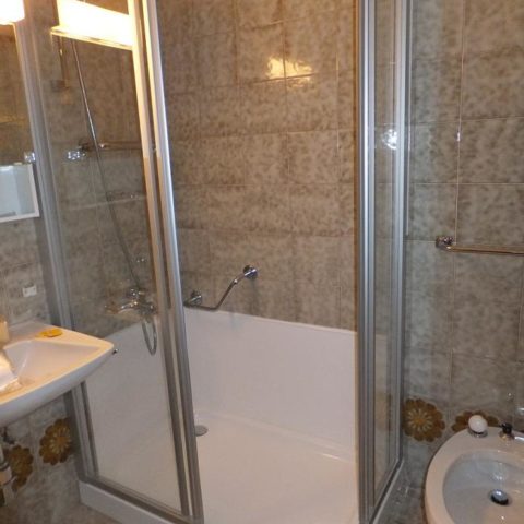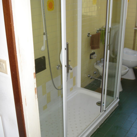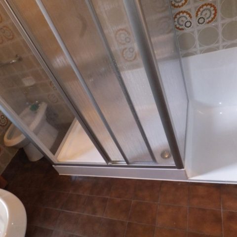 Ed infine la posa del nuovo box-doccia in cristallo trasparente, con apertura centrale a 2 ante scorrevoli.