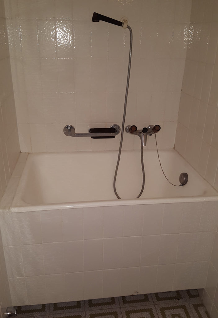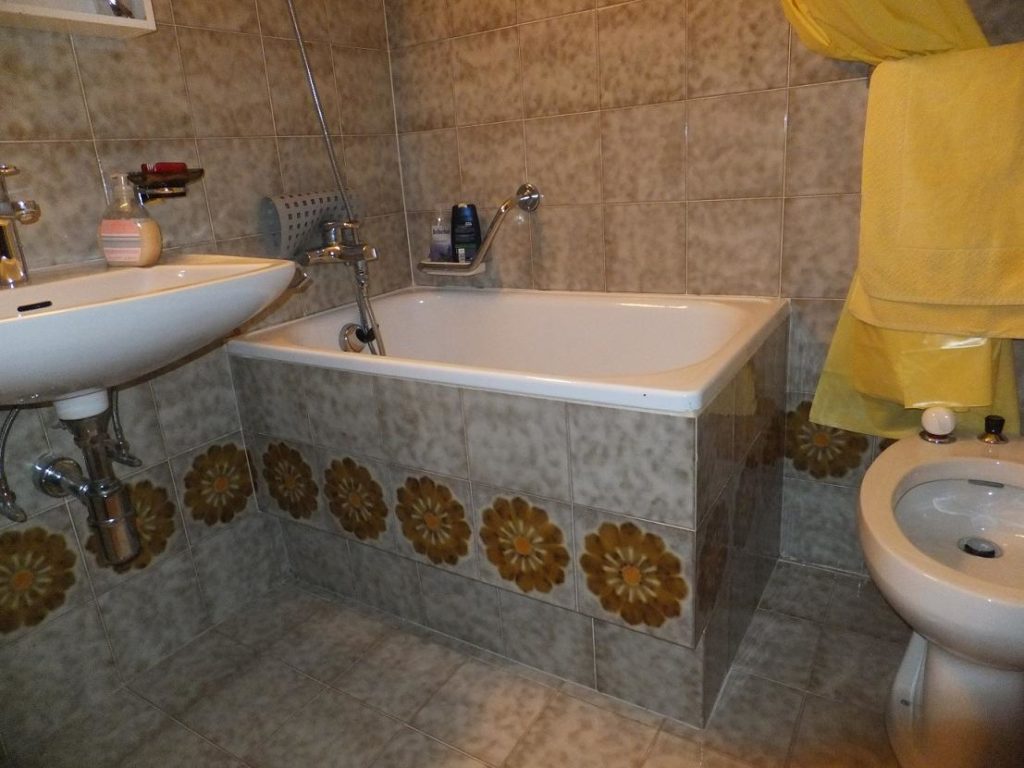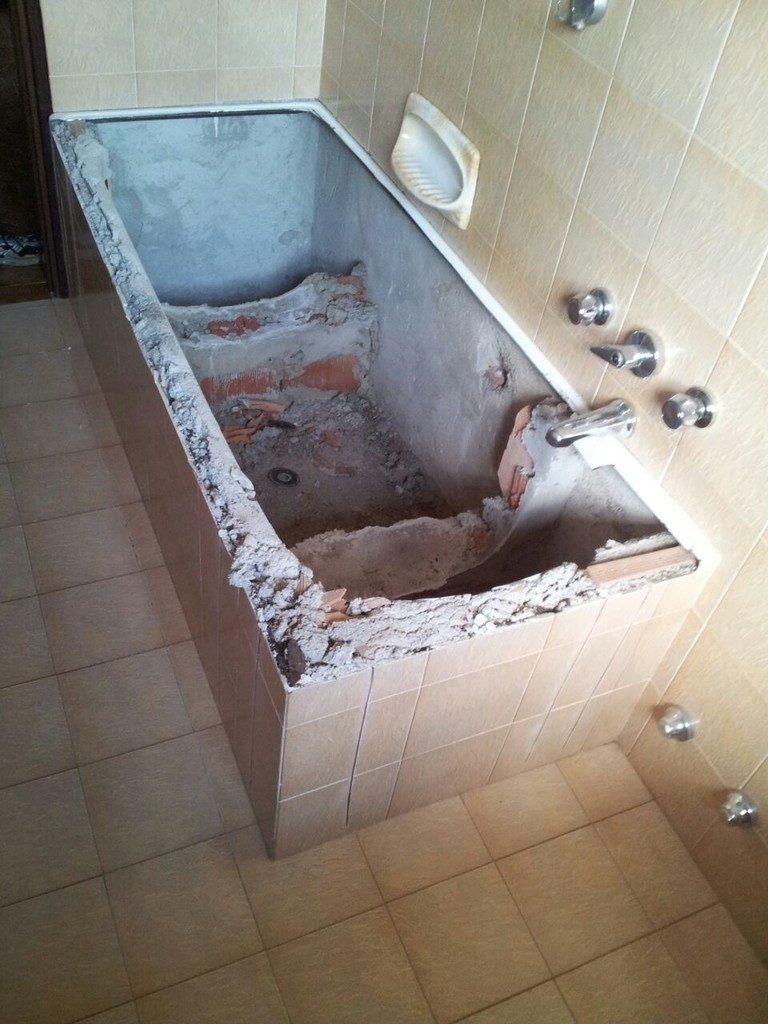 Il lavoro eseguito consiste nella rimozione della vecchia vasca da bagno e muri di sostegno, senza danni ai rivestimenti perimetrali.