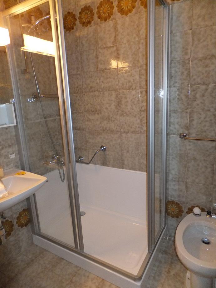 Ed infine la posa del nuovo box-doccia in cristallo trasparente, con apertura centrale a 2 ante scorrevoli.